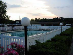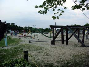 This is the pool with the pavilion behind it and the playground